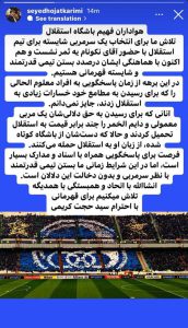 در حالی که شنیده می شود ماموریت انهدام استقلال توسط نظری جویباری رو به پایان است و قرار است فرد دیگری جایگزین وی شود، شنیده می شود حجت کریمی مدیرعامل سابق این تیم در صف کاندیدا حضور دارد. اتفاقی که با توجه به سابقه بد این فرد در برخورد با ساپینتو، یک خیانت آشکار به منافع باشگاه استقلال محسوب می شود و اگر این انتخاب عملی شود، بدون ذره تردید هلدینگ نه تنها در جهت تقویت استقلال گام بر نمی دارد بلکه با انتخاب های حساب شده خود افرادی را بر سر کار می آورد که مانع از رشد این تیم شوند. به واقع سوال اینجاست که خروجی مدیران استقلال در ۶-۷ ماهی که مسئولیت داشته اند چه بوده است؟ در حال حاضر تنها سه گزینه قابل اعتماد و با شرف برای تصدی مدیرعاملی استقلال وجود دارد که عبارتند از مصطفی آجورلو، محمدحسین قریب، سعید آذری.