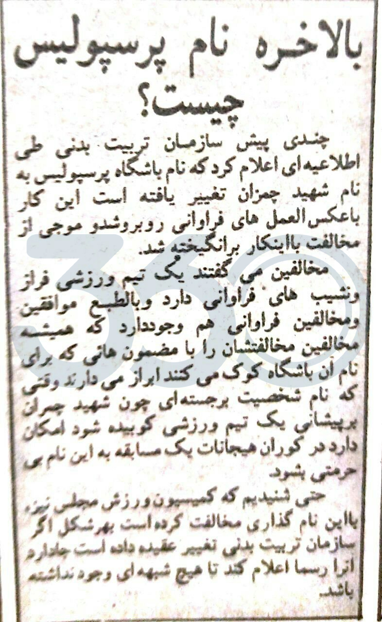 تغییر نام پرسپولیس به چمران؛ ذهنیتی که برابر اصالت سرخ‌پوشان تسلیم شد