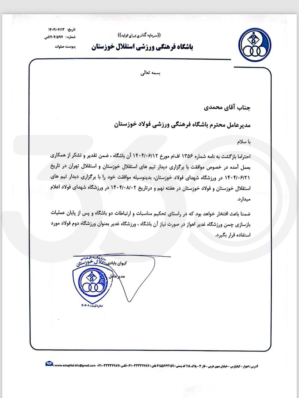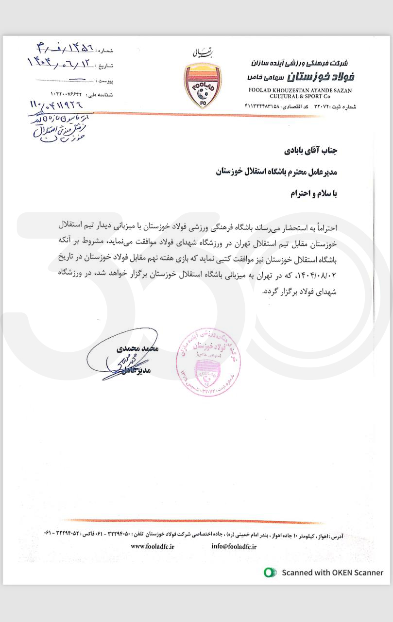 موافقیت استقلال خوزستان با شرط فولادی‌ها