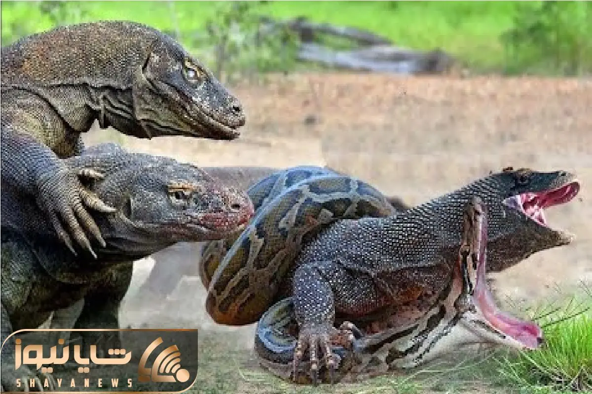 در کنار برکهای در جنگل، یک اژدهای کومودو غولپیکر بیسروصدا مشغول نوشیدن آب بود، بیخبر از خطر خزندهای که در نزدیکیاش بود.