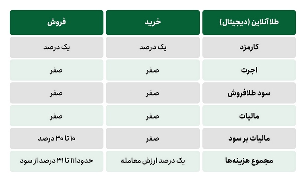 ظهور پلتفرمهای فروش آنلاین و دیجیتال طلا، راه جدیدی برای خرید و فروش طلا است. فارغ از پشتوانه غیرشفاف دارایی، درجه اعتبار و مجوزهای این پلتفرمها – که باعث نگرانی بسیاری از افراد میشود – به بررسی هزینههای خرید و فروش طلا در این پلتفرمها میپردازیم: