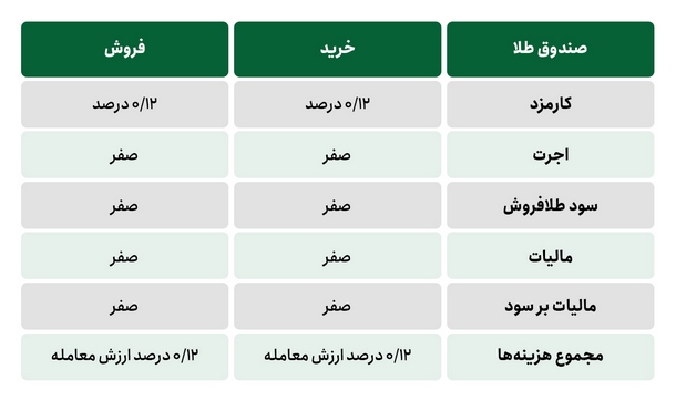 صندوقهای طلا را میتوان بهترین روش برای خرید و فروش طلا در نظر گرفت. بدون توضیح اضافی، بهتر است نگاهی به هزینههای خرید و فروش صندوق طلا داشته باشیم: