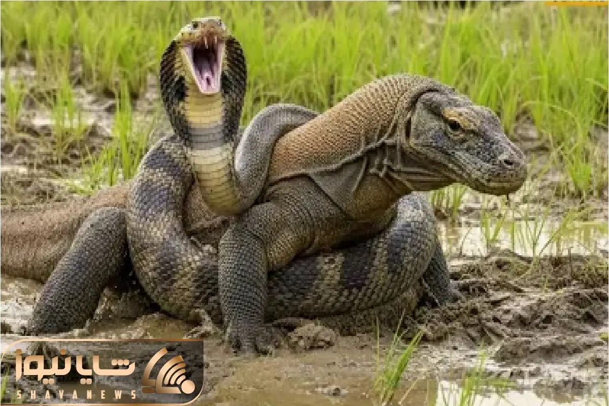 لحظه وحشتناکی که یک کومودو به یک مار پیتون غول پیکر حمله می کند و دیگر حیوانات نیز به این حیوان درنده خو حمله ور میشوند.