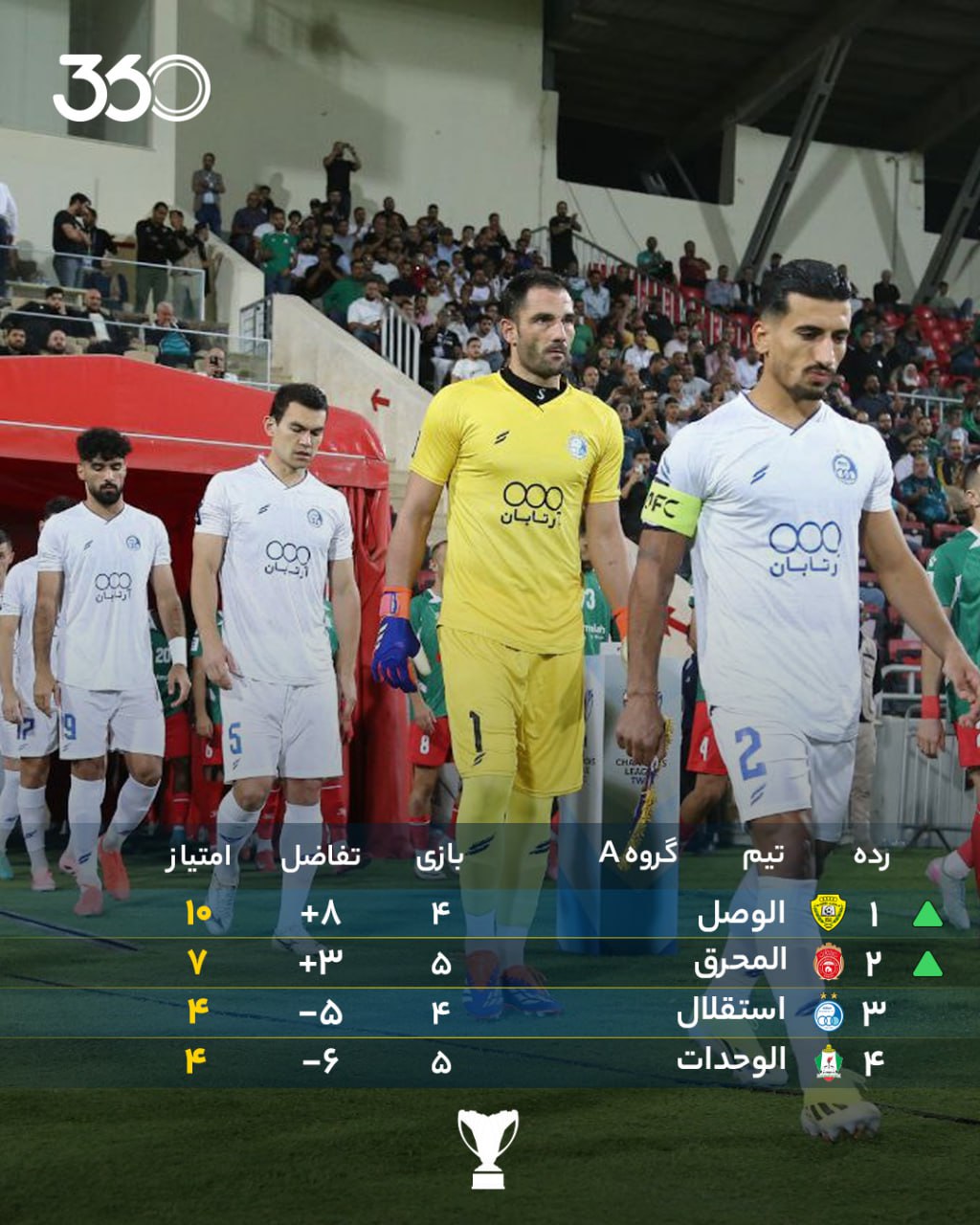 استقلال در شرایطی امشب اولین تساوی آسیاییاش در فصل جدید را متحمل شد که حالا آبیها فقط ۴ امتیاز در پایان هفته چهارم دارند. در طرف مقابل، الوحدات در حالیکه مسابقهاش برابر المحرق در دور برگشت را هم انجام داده و در واقع ۵ بازی از ۶ مسابقهاش را برگزار کرده، فقط ۴ امتیاز دارد که به دلیل باخت در بازی رودررو با استقلال و تفاضل گل ضعیفتر نسبت به آبیها قعرنشین جدول گروه محسوب میشود و المحرق با ۷ امتیاز از ۵ بازی و الوصل با کسب ۱۰ امتیاز از ۴ مسابقه در رتبههای بالاتر هستند.